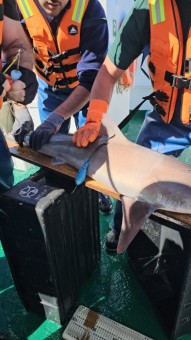 Como inicio formal del Programa Regional de Marcado, entre los días 10 y 13 de noviembre de 2025 se llevó a cabo una campaña dedicada al marcado a bordo del BIPO “Mar Argentino” del INIDEP. Durante esta campaña, técnicos del INIDEP y de la DINARA colocaron 328 marcas convencionales en diversas especies de condrictios, incluyendo otros tiburones (pez ángel), rayas, chuchos, peces guitarra y quimeras. A su vez, durante la campaña se equiparon con transmisores satelitales a tres tiburones trompa de cristal o cazón, y tres tiburones gatuzo.
