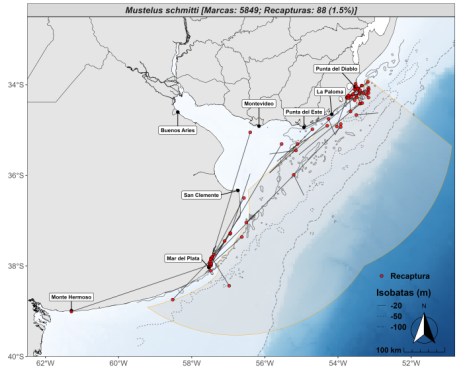 En el ámbito del Grupo de Trabajo de Condrictios y en el marco del Plan de Recuperación del tiburón gatuzo (Mustelus schmitti), la CTMFM impulsó un Programa Conjunto de Marca-Recaptura de Gatuzo. Este tipo de programas representan un método ampliamente utilizado para conocer migraciones y desplazamientos individuales, realizar estimaciones de mortalidad (natural y por pesca) y supervivencia, evaluar tamaños poblacionales, así como realizar y validar estudios de crecimiento.