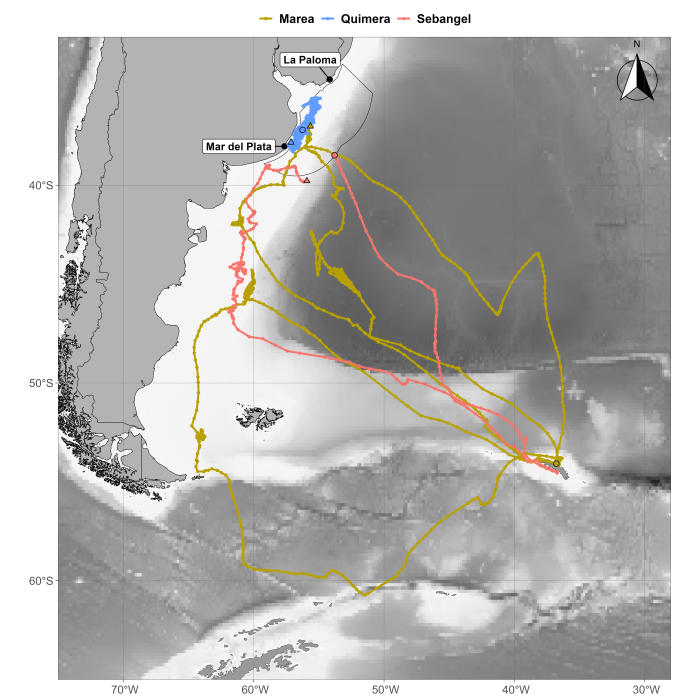 Como parte del Plan de Investigación del “Plan de Acción Regional para reducir la interacción de aves marinas con las pesquerías que se desarrollan en el área del Tratado del Río de la Plata y su Frente Marítimo” (PAR AVES MARINAS de la CTMFM) se inició un programa binacional de marcado satelital de aves marinas pelágicas. Este programa tiene dentro de sus objetivos determinar la superposición en espacio y tiempo de albatros y petreles asociados con pesquerías comerciales en la Zona Común de Pesca Argentino-Uruguay (ZCPAU).